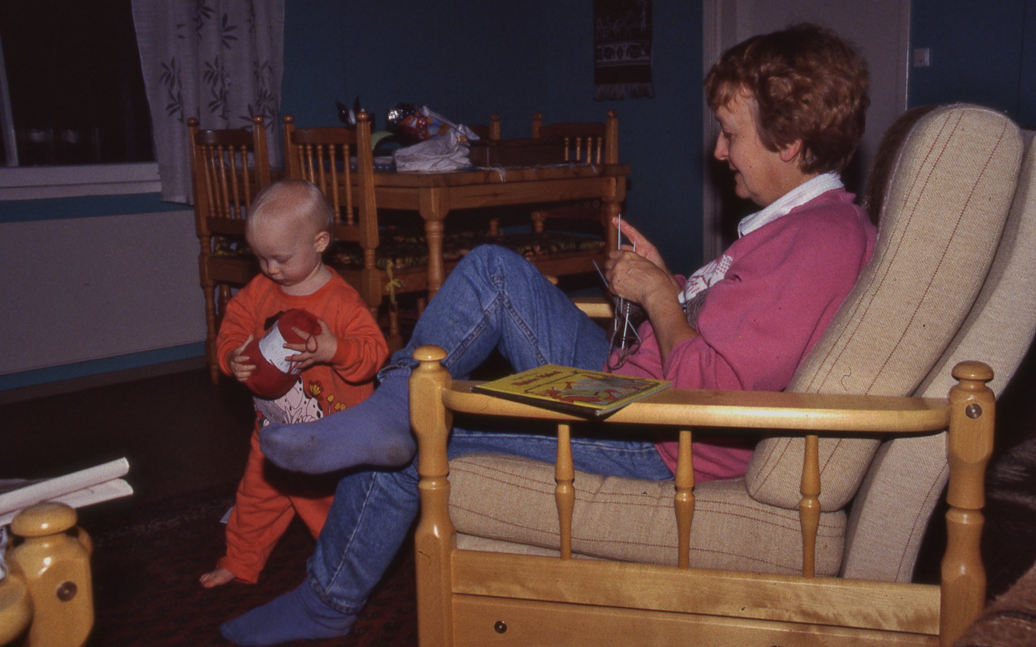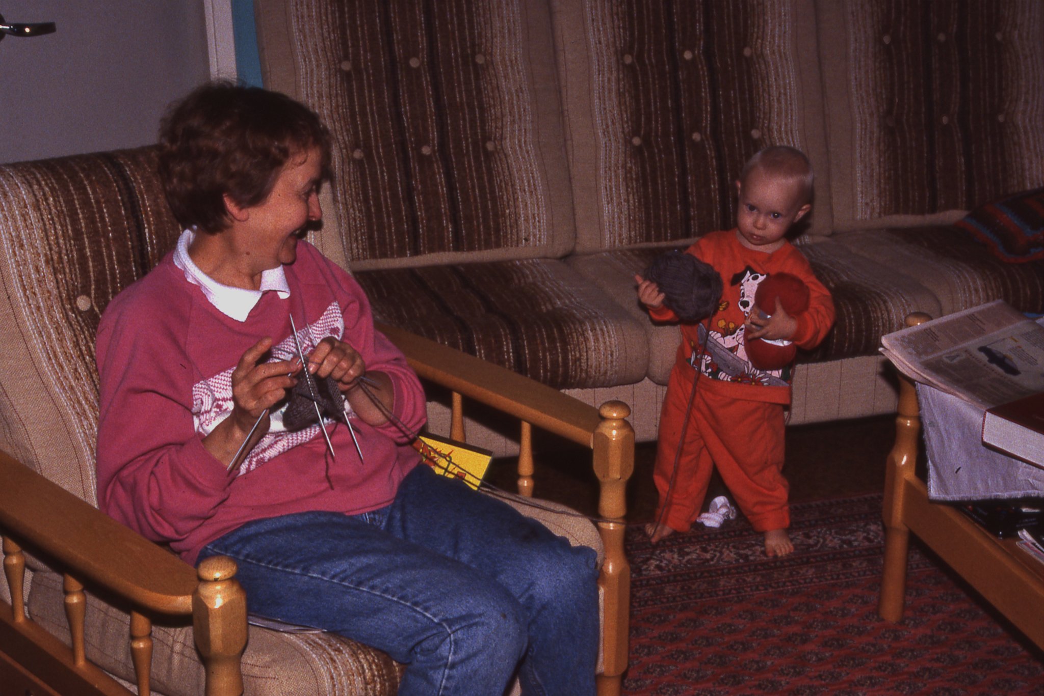 Helping mummi with her knitting