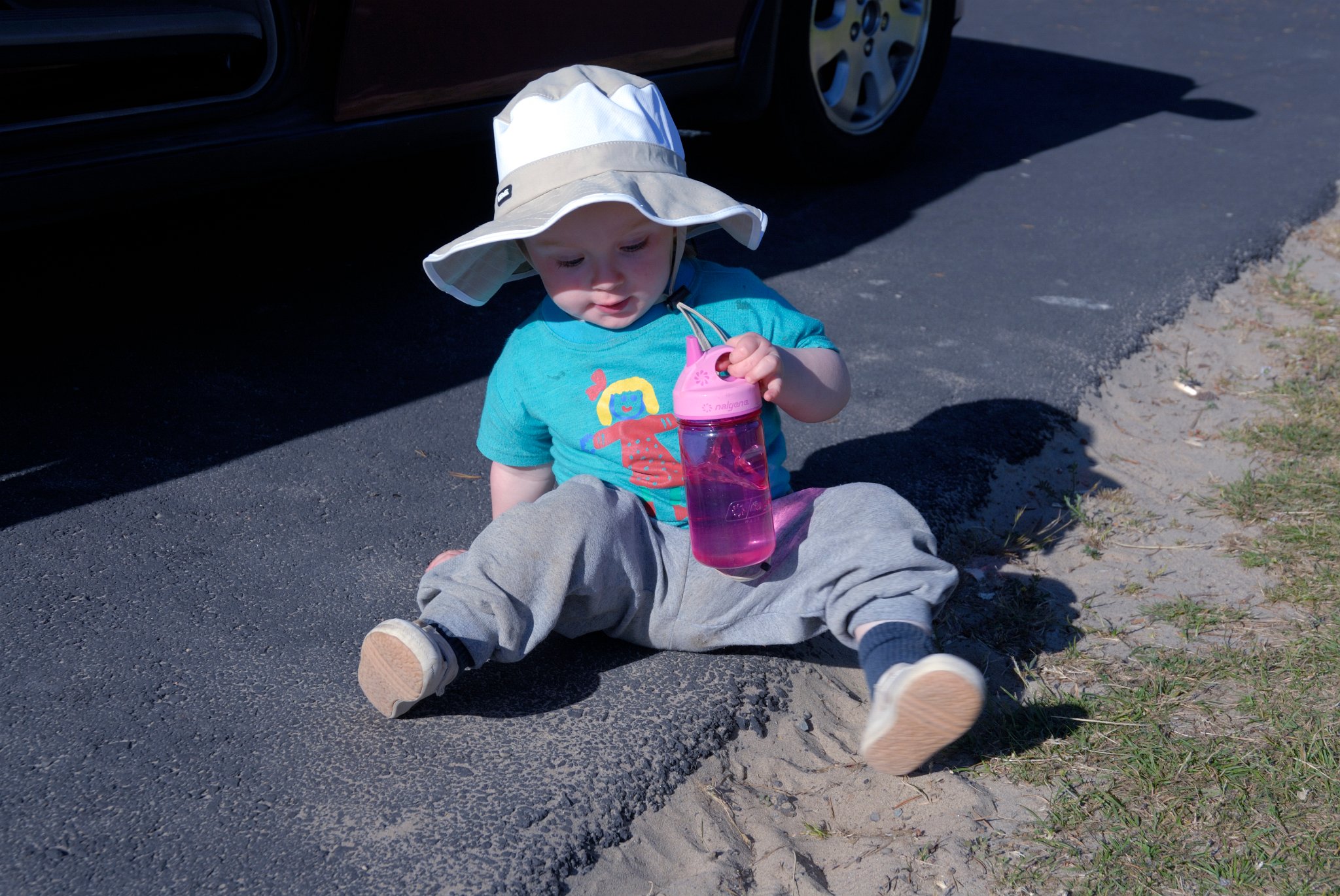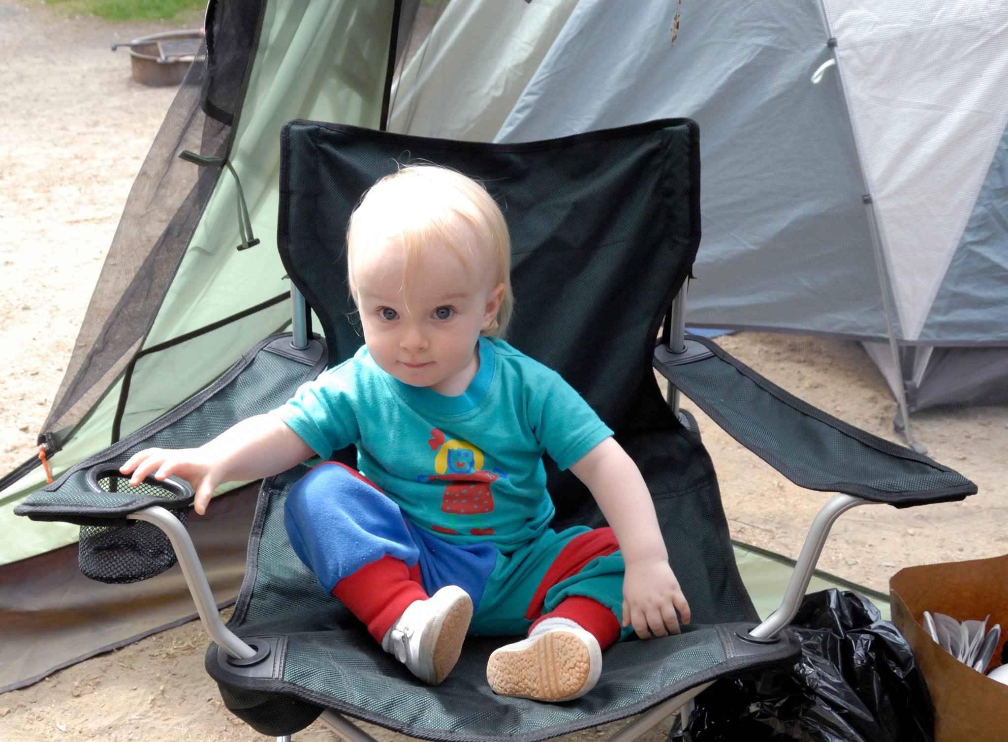 Elsa at our campsite with wearing her new hat