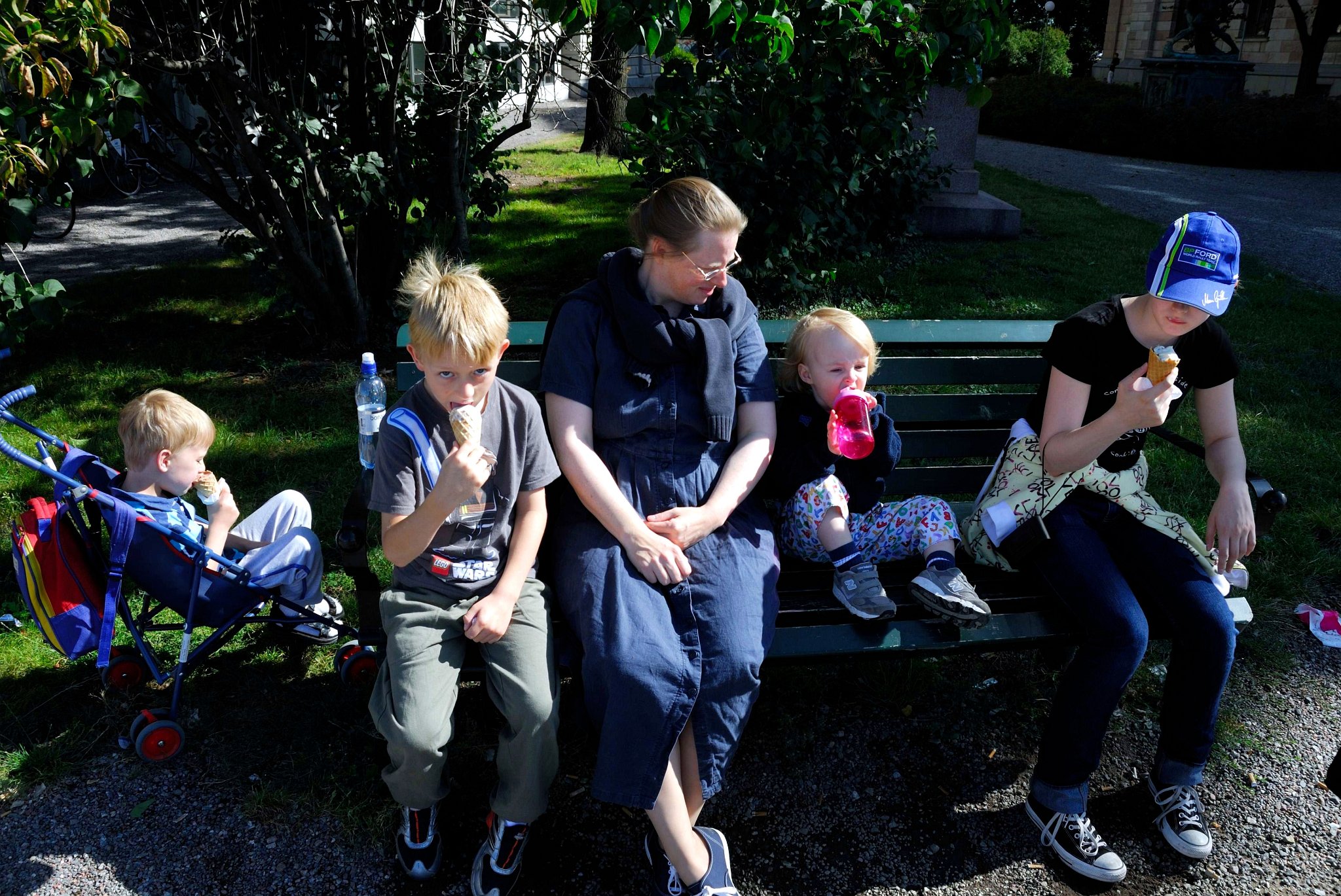 Enjoying ice cream while waiting for the Swedish National Museum of Fine Arts to open