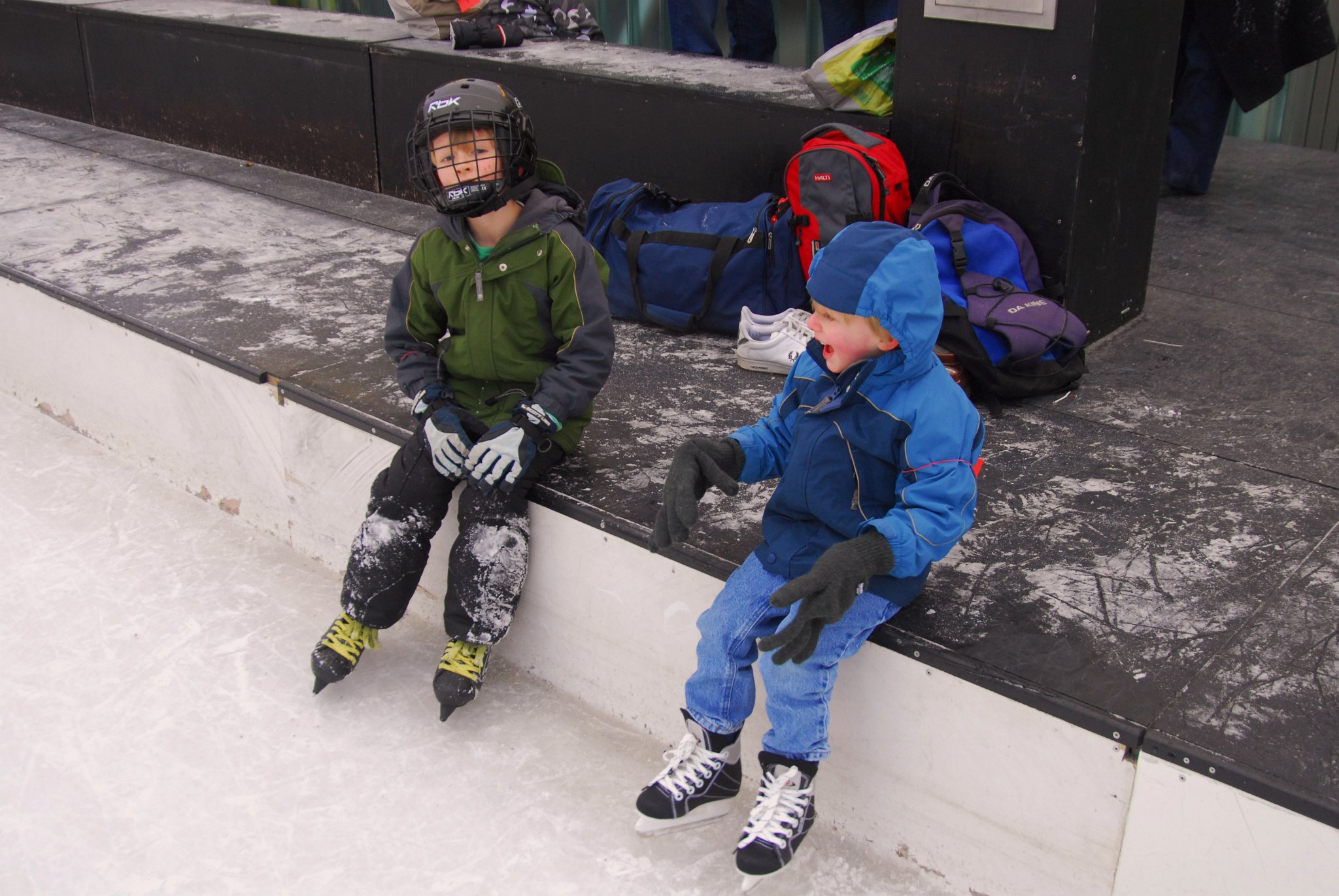 Tuomas and Antti taking a break from skating. Note Antti's extra large gloves.