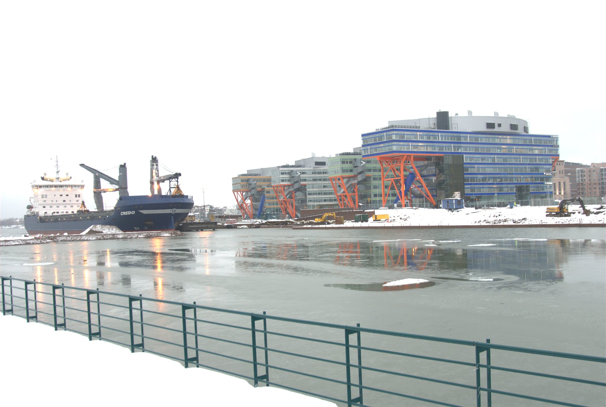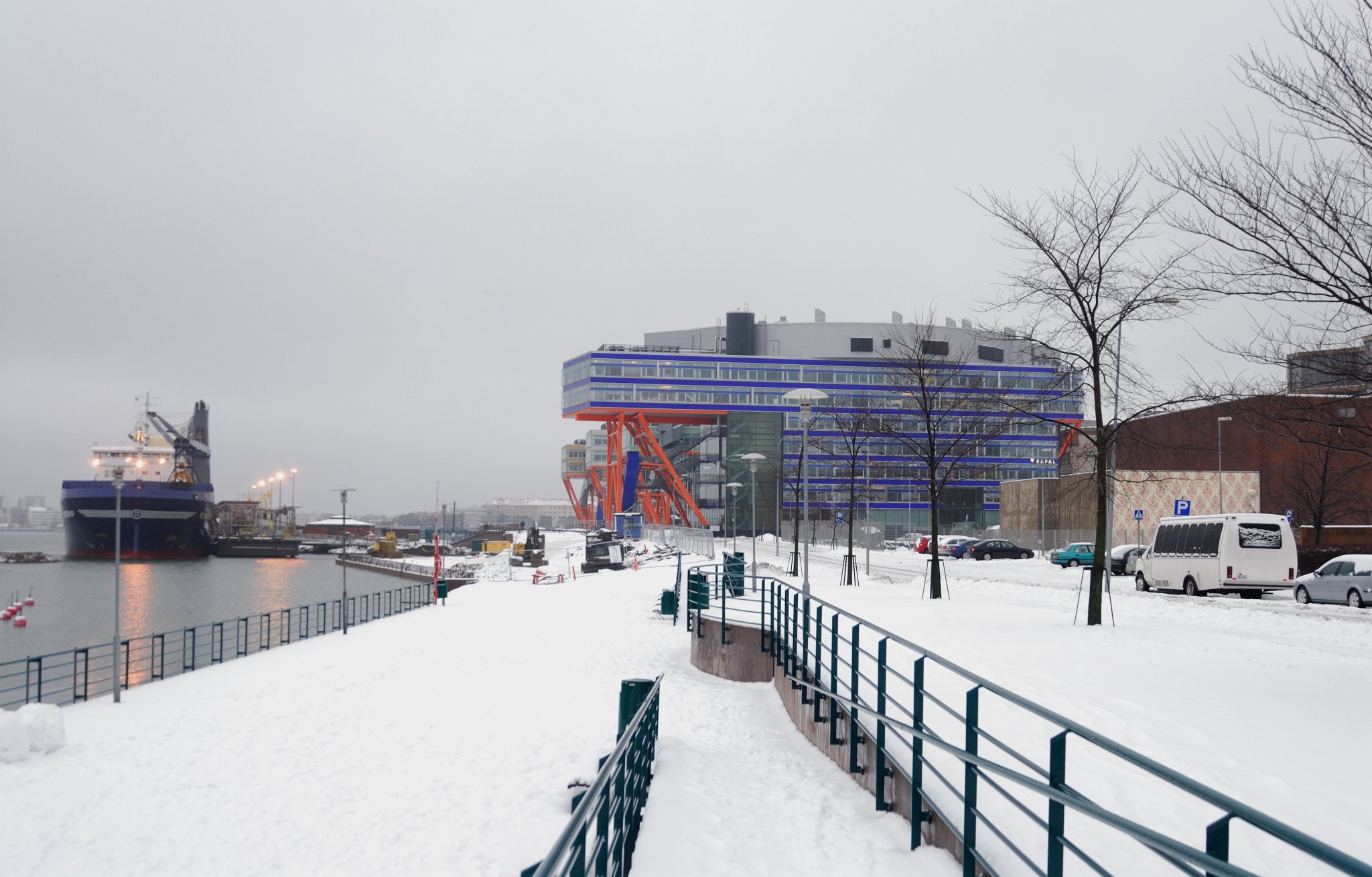 F-Secure's office in Ruoholahti, with a coal ship unloading next to the building