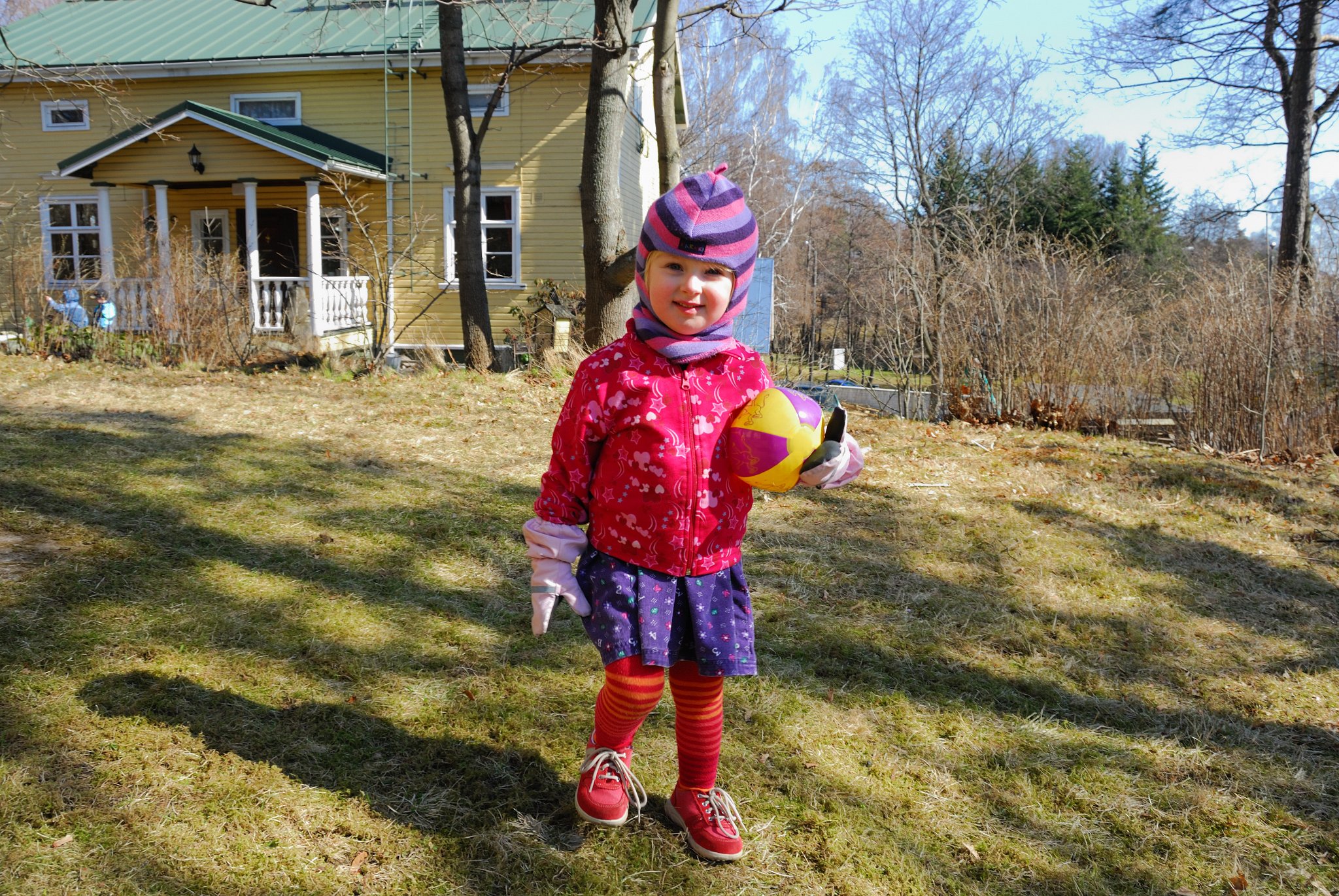 Elsa in our backyard on the last weekend of April. It's no longer cold, but not terribly warm yet either.