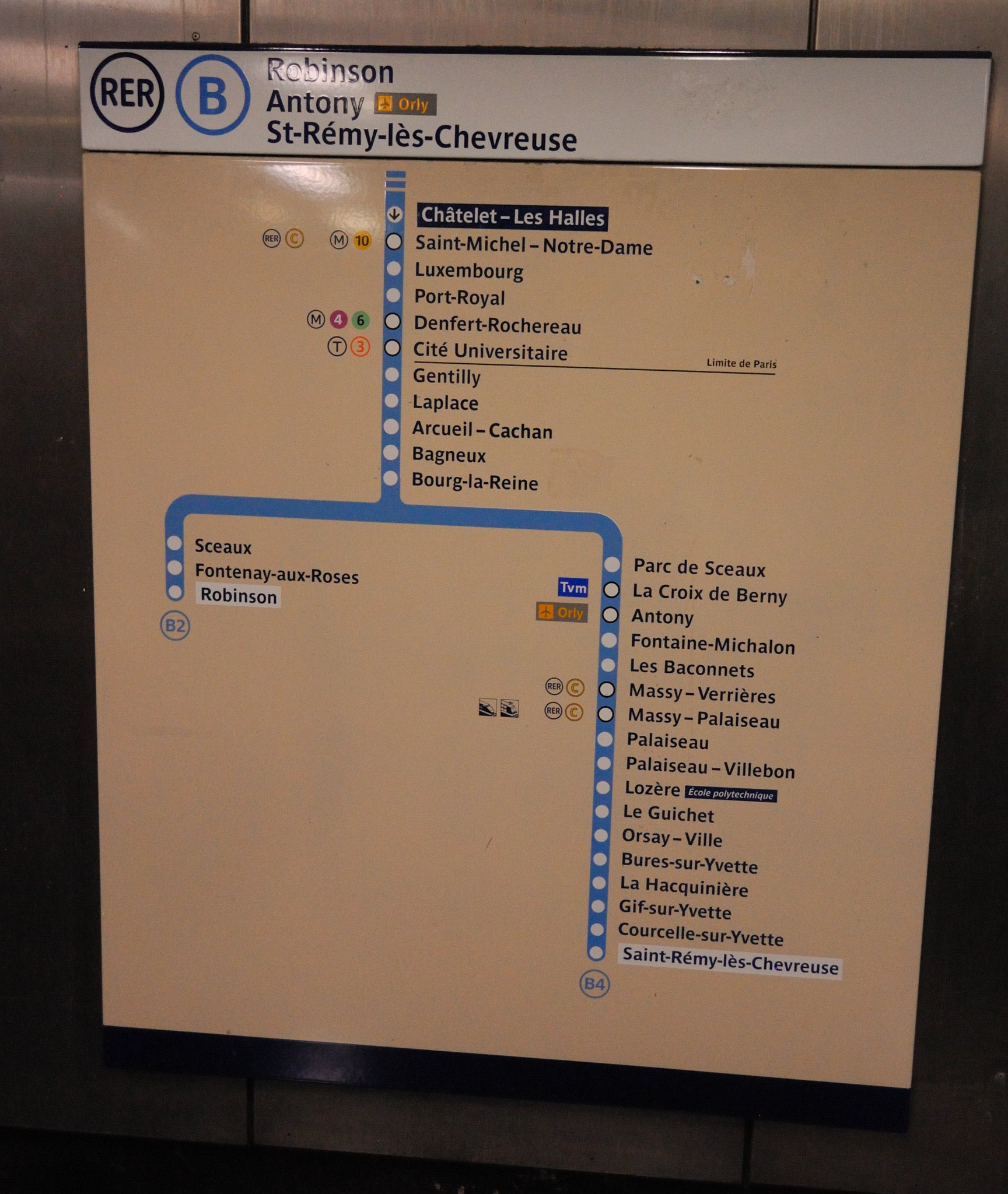 Walking through the Châtelet – Les Halles Métro labyrinth on our way to the RER B to Luxembourg.