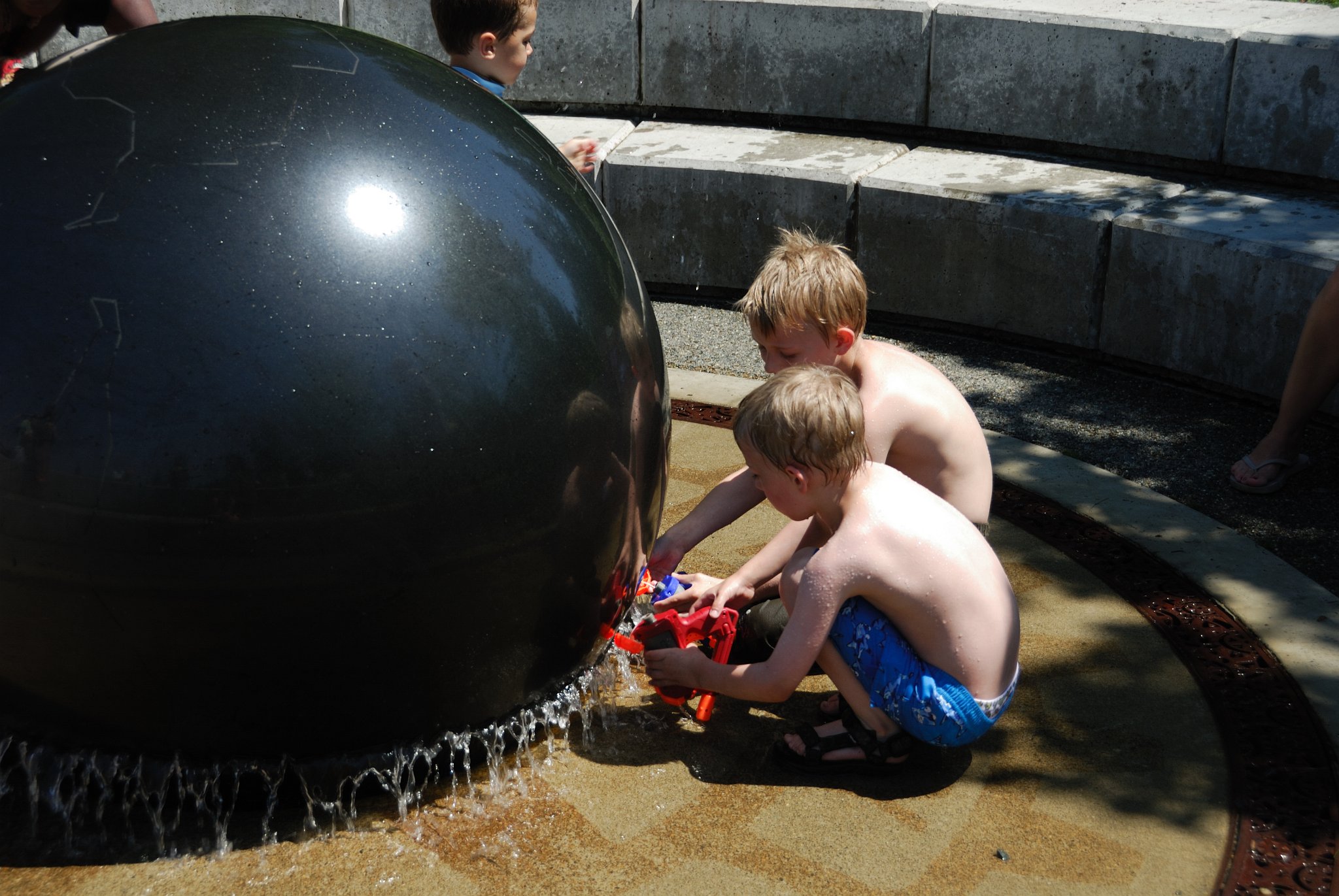 Antti and Tuomas filling their water guns at the Crossroads water park