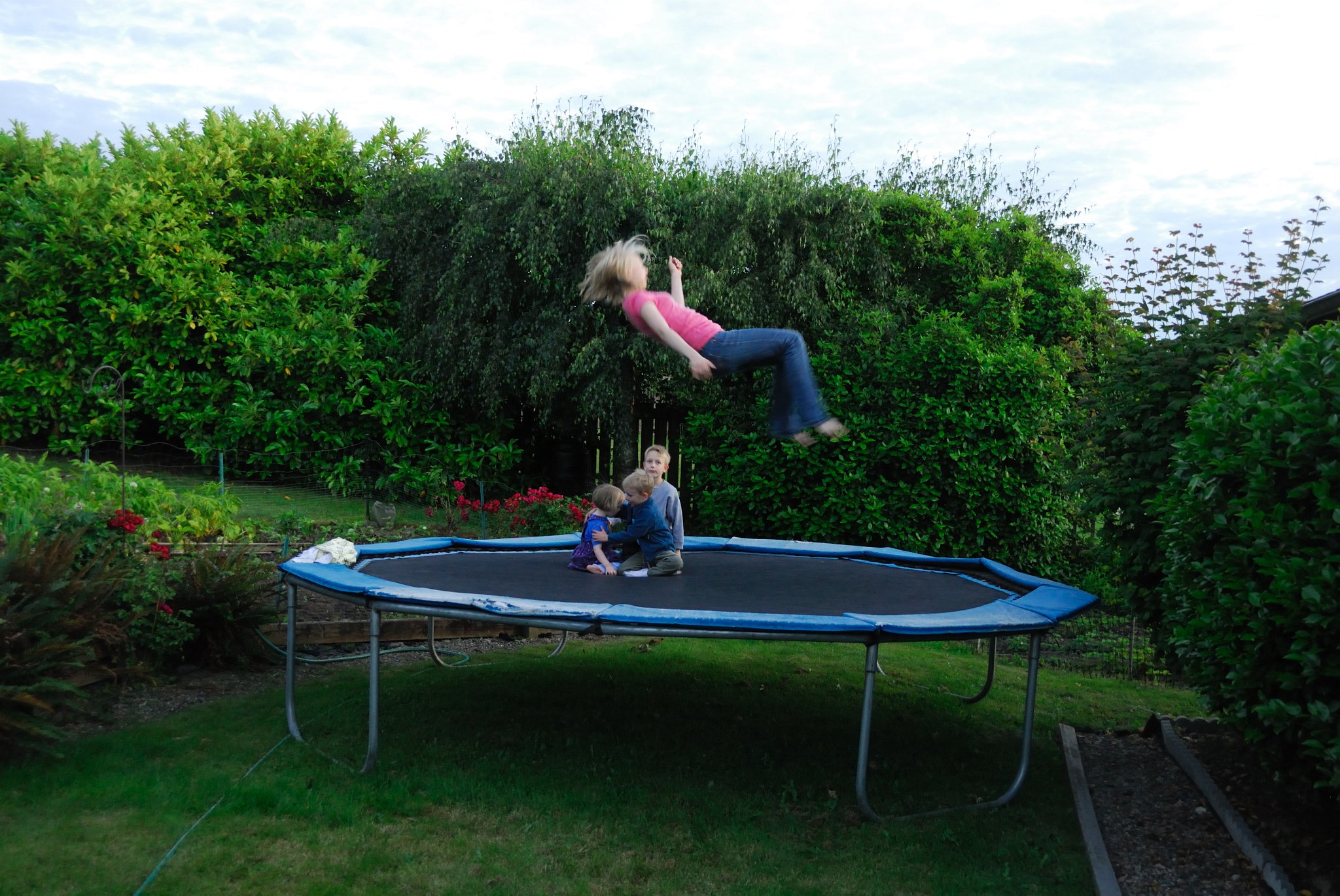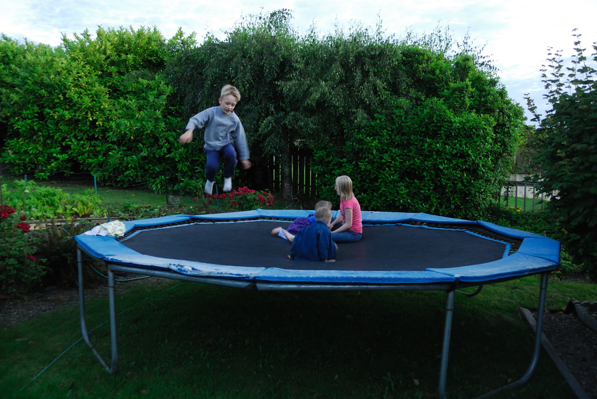 Johanna, Elsa, Tuomas and Antti jumping on the trampoline
