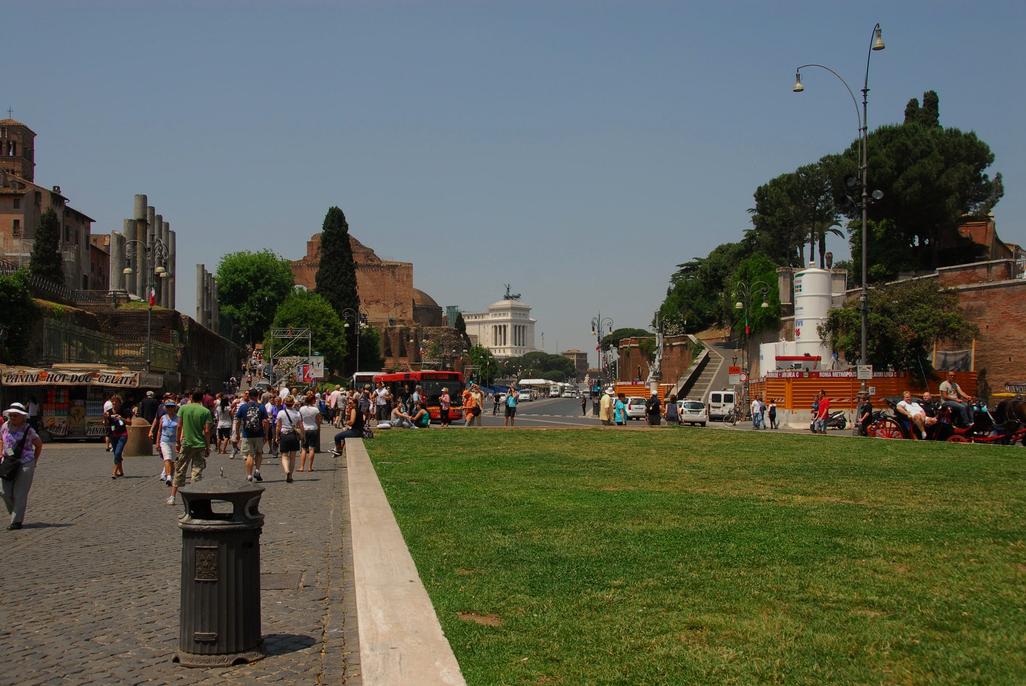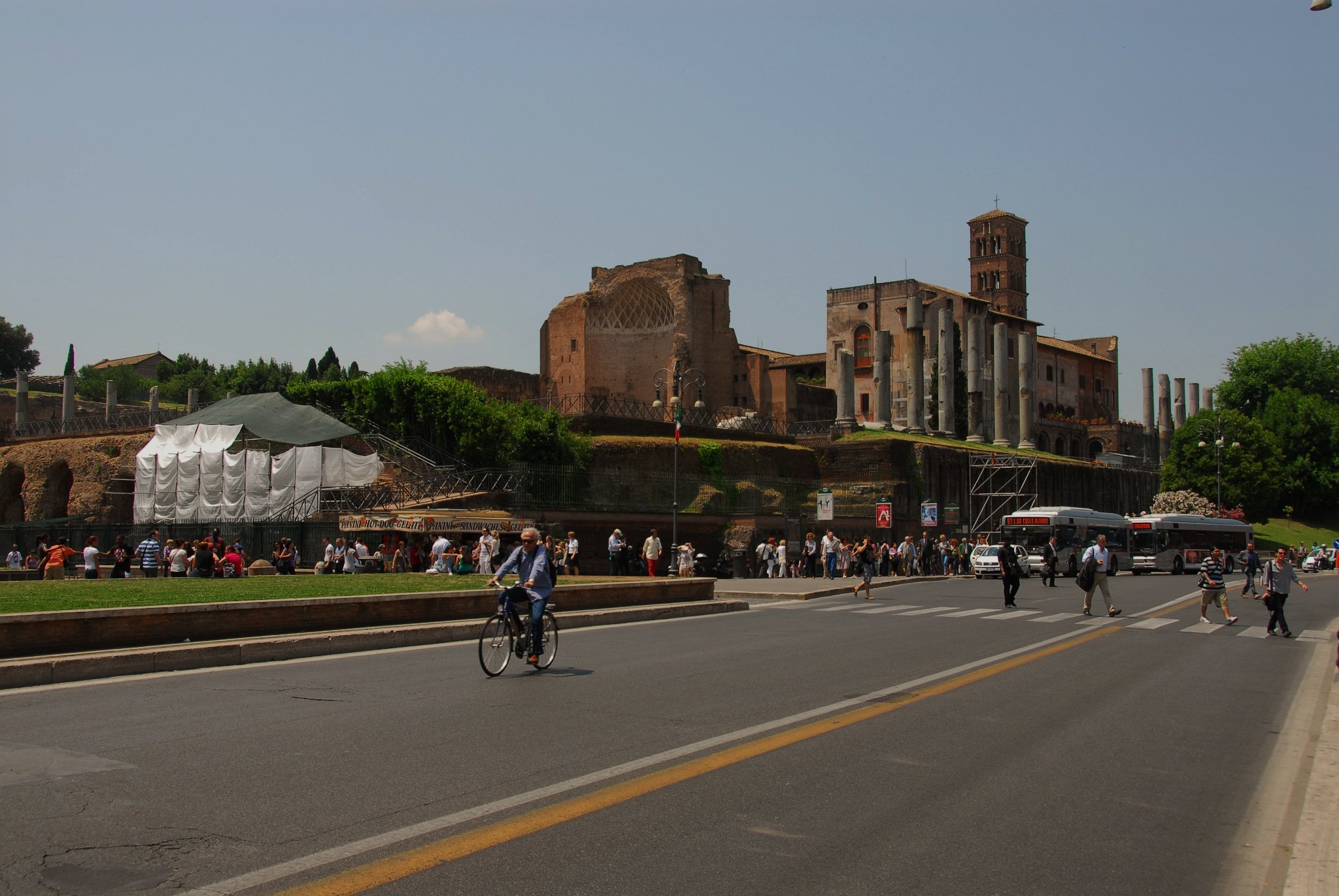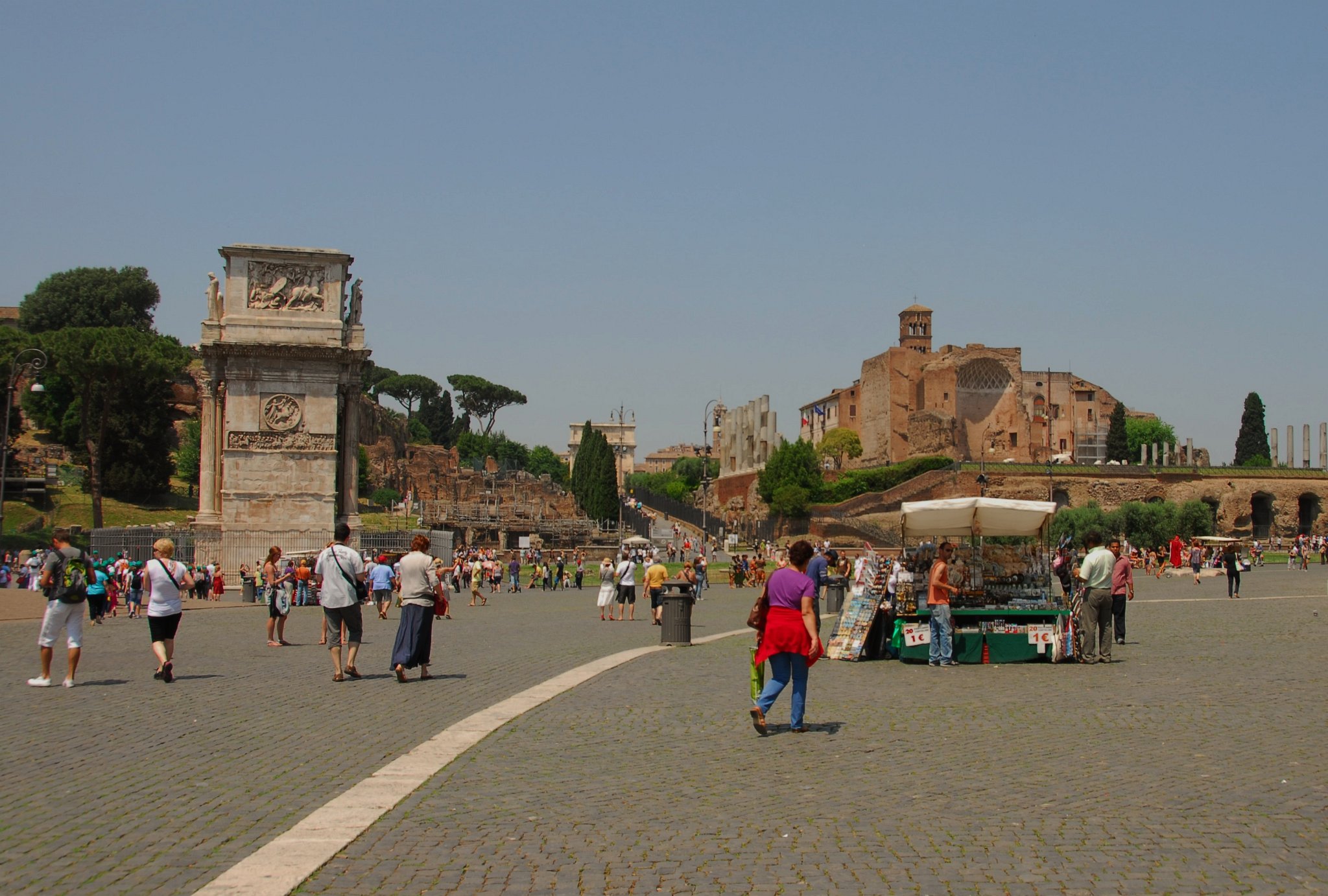 9 Walking from the Colosseum back to the bus stop: the Arch of Constantine is towards the left, the Via Sacra starts in the center of the picture and extends into the Forum. The Temple of Venus and Roma is on the right.