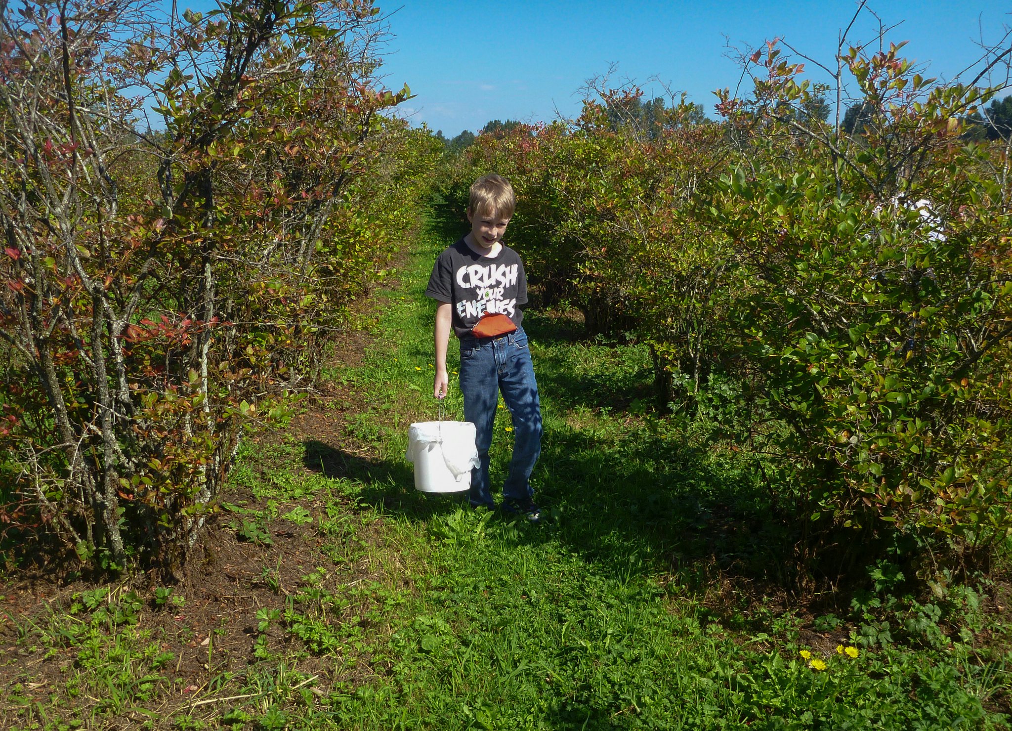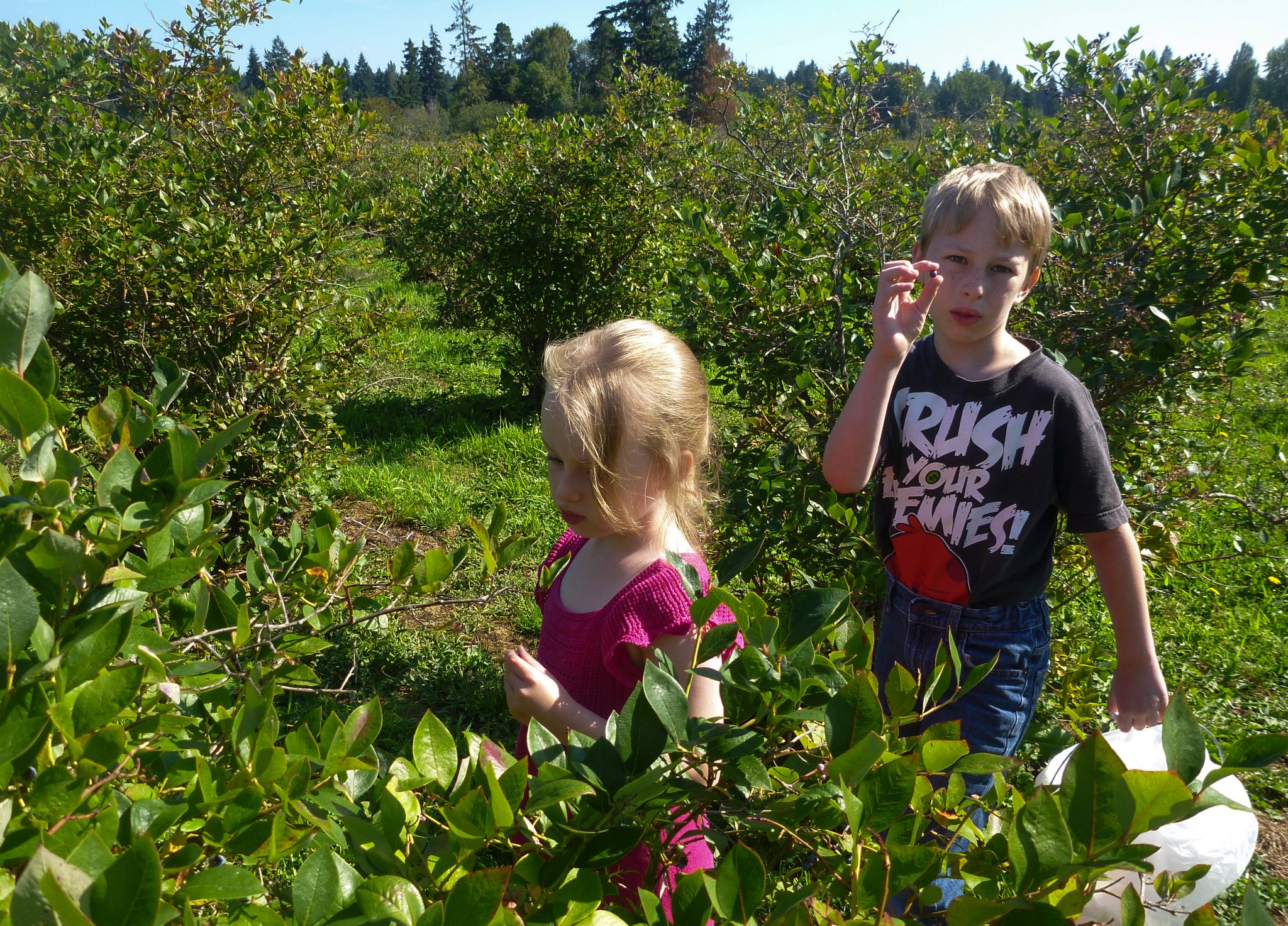 Elsa and Antti picking blueberries on labor day weekend