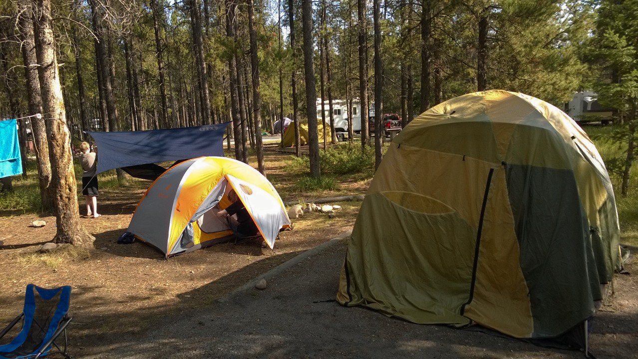 35 Our campsite at Tunnel Mountain campground in Banff National Park. It had rained quite a bit the previous night in Jasper, so once we got to Banff we just set up our tents to dry first.