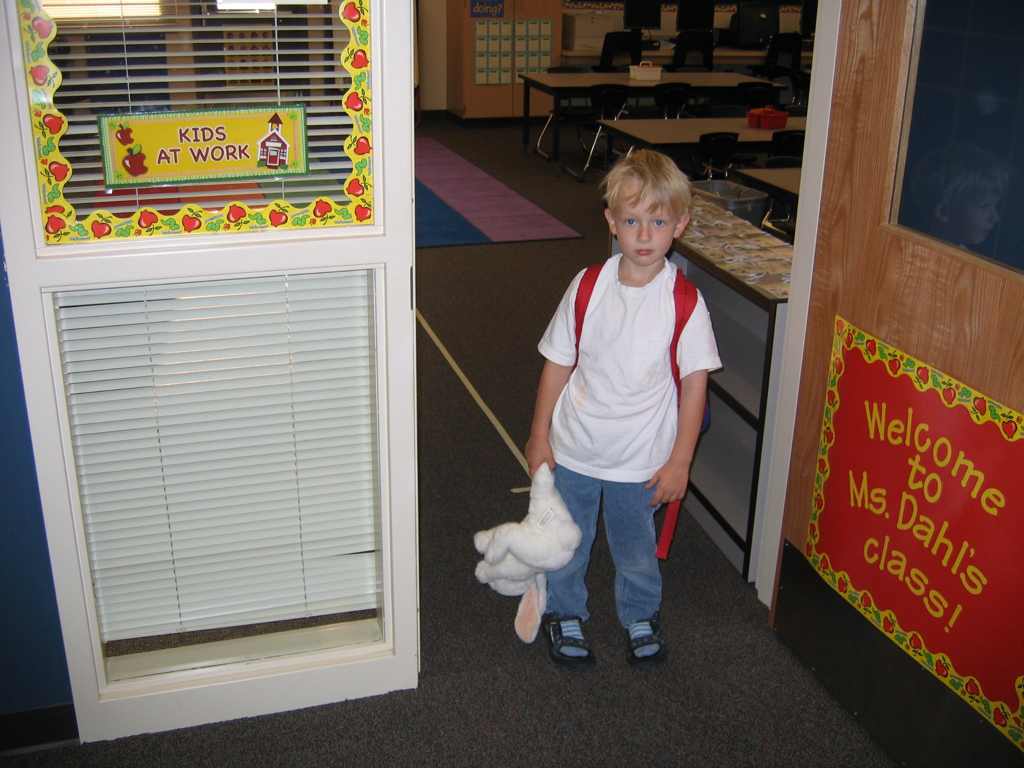First day of school for Tuomas and bunny at Lake Hills Elementary
